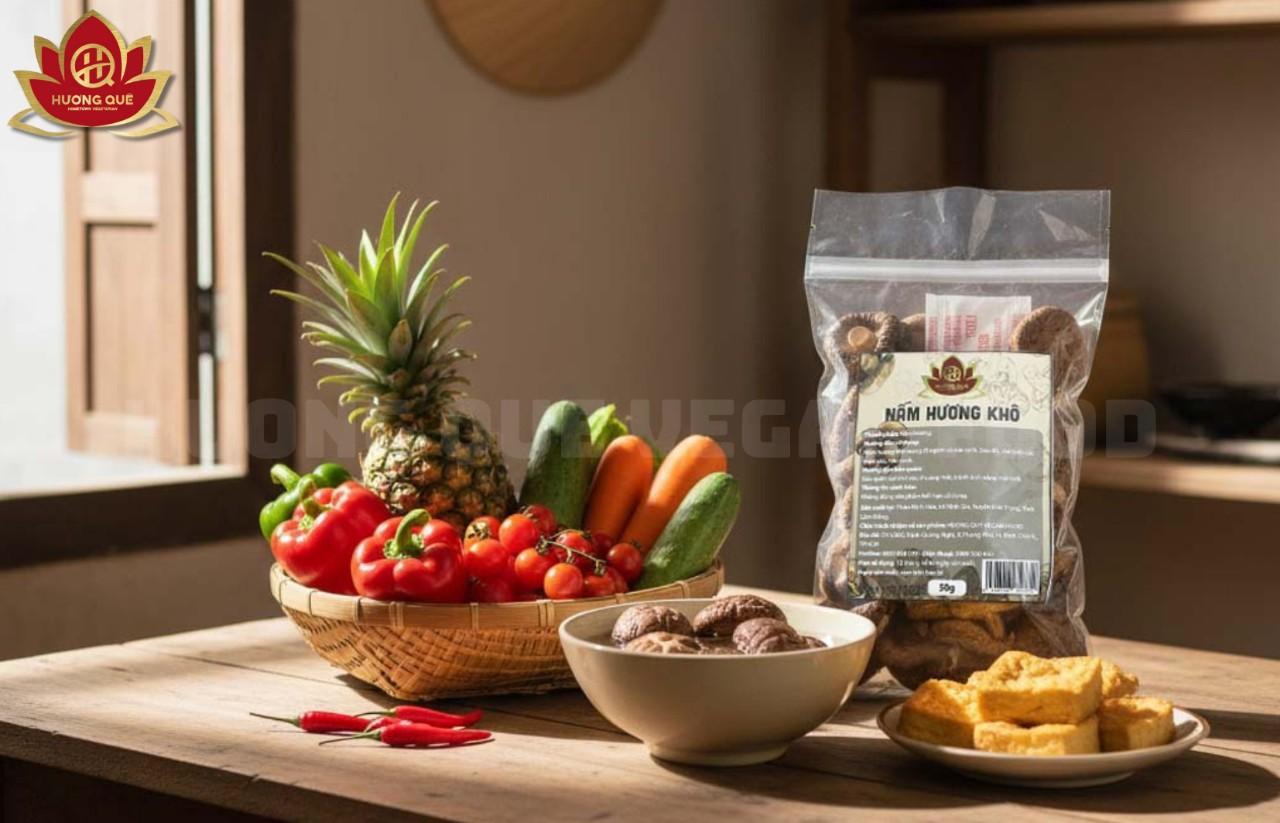 Nấm hương: Ngâm 5 phút, rửa sạch, cắt đôi hoặc khía chữ thập.