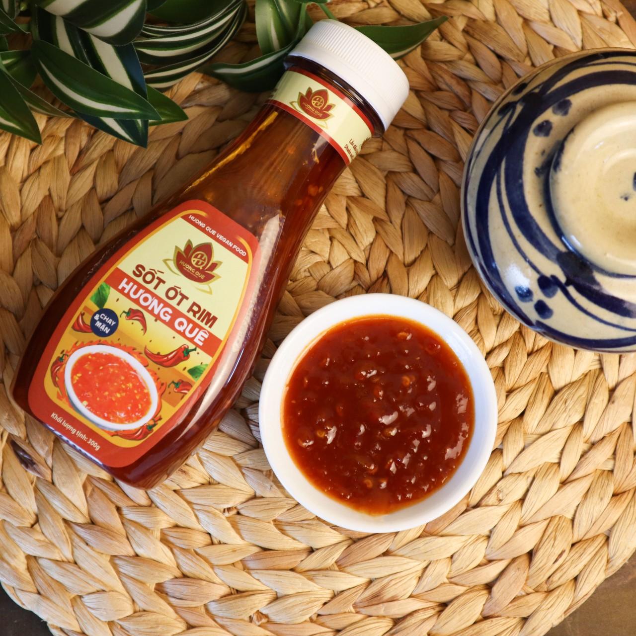 “Sốt ớt rim Hương Quê” được chế biến từ những quả ớt tươi ngon, dầu điều đẹp mắt và gia vị chay nêm nếm vừa miệng. Sốt có màu đỏ sánh quyện bắt mắt, mang mùi thơm nồng đặc trưng và vị cay cay mặn mặn hài hòa, đánh thức vị giác một cách mạnh mẽ. Mỗi giọt sốt như mang theo tinh túy của ẩm thực dân dã Việt Nam – giản dị nhưng đầy cuốn hút.