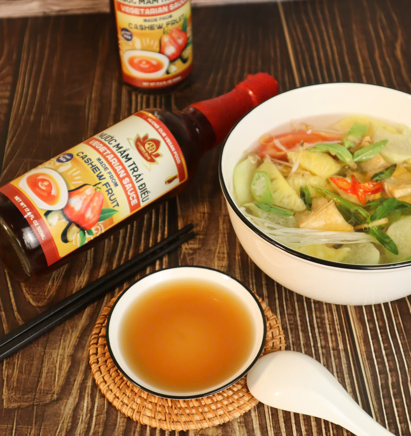 - Có rất nhiều loại nước mắm chay được cho ra mắt - Đặc biệt nhất vẫn là nước mắm chay trái điều của Hương Quê Vegan