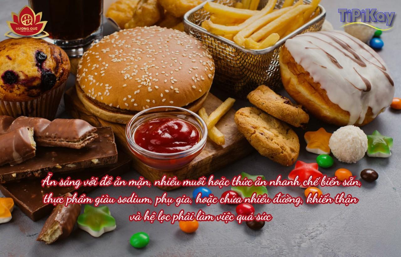 Khi bỏ bữa sáng, cơ thể phải duy trì chức năng lọc lâu hơn sau một đêm ngủ — thận “được gọi” lọc máu, điều tiết dịch thể liên tục mà không được bổ sung dinh dưỡng. Ăn sáng với đồ ăn mặn, nhiều muối hoặc thức ăn nhanh chế biến sẵn, thực phẩm giàu sodium, phụ gia, hoặc chứa nhiều đường, khiến thận và hệ lọc phải làm việc quá sức. Muối dư thừa gây giữ nước, tăng huyết áp, một trong những nguyên nhân hàng đầu làm tổn thương cầu thận theo thời gian.
